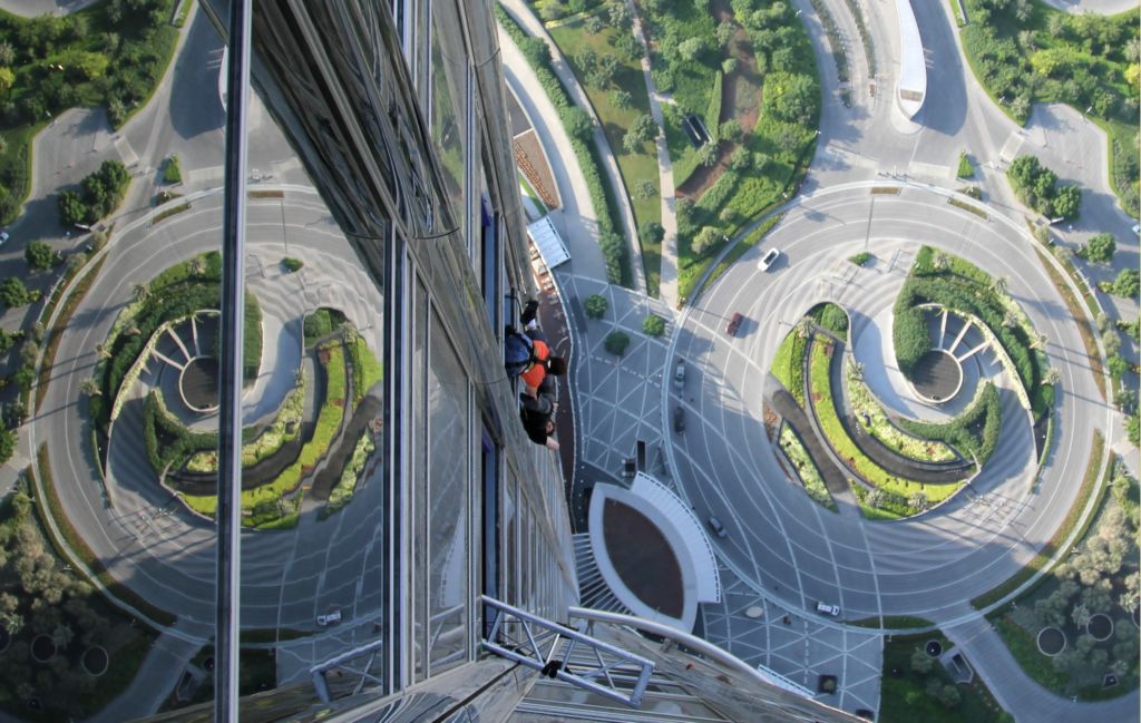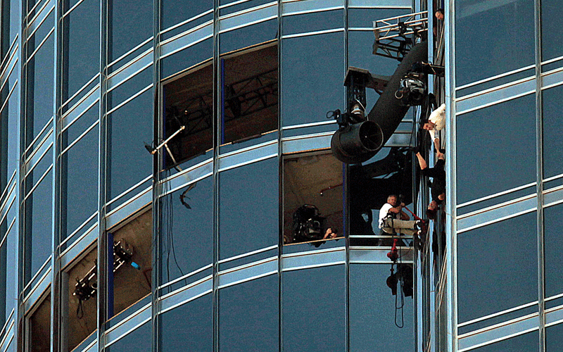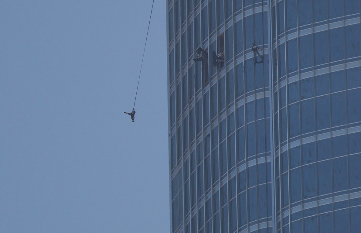 En af "Mission: Impossible - Ghost Protocol" helt store omdrejningspunkter, er den 828 meter høje Burj Khalifa, der er verdens højeste menneskeskabt konstruktion. Den har Tom Cruise åbenbart, fundet seværdig og iagttagende, hængende i en livline 500 meter over jordens overflade!